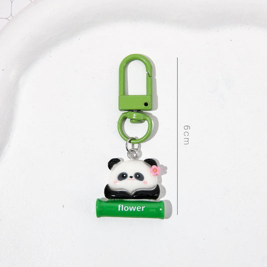 4 slumpmässiga söta panda-nyckelringar i tecknad stil