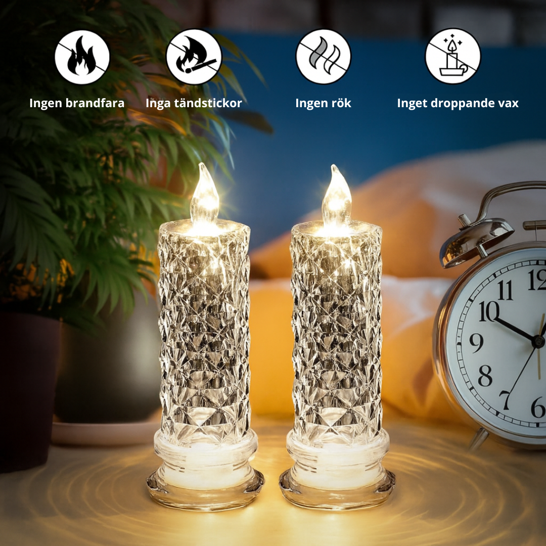 Kristallros Ljus – Romantisk Glöd utan Spill (4 st)