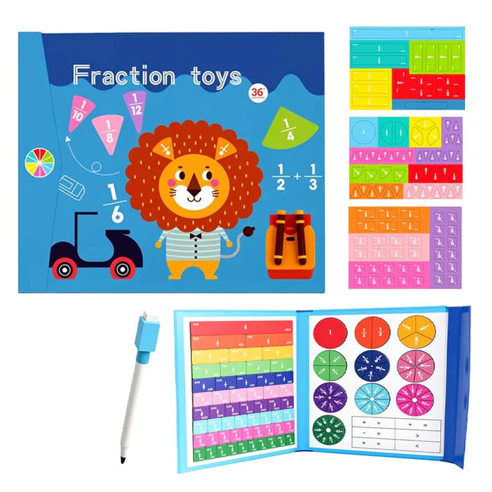 Med Magnetiskt mattepussel blir bråk något barnet kan se, röra och bygga. Genom att konstruera en tredjedel, jämföra med en fjärdedel och testa proportioner växer förståelsen intuitivt – inte genom gissning.