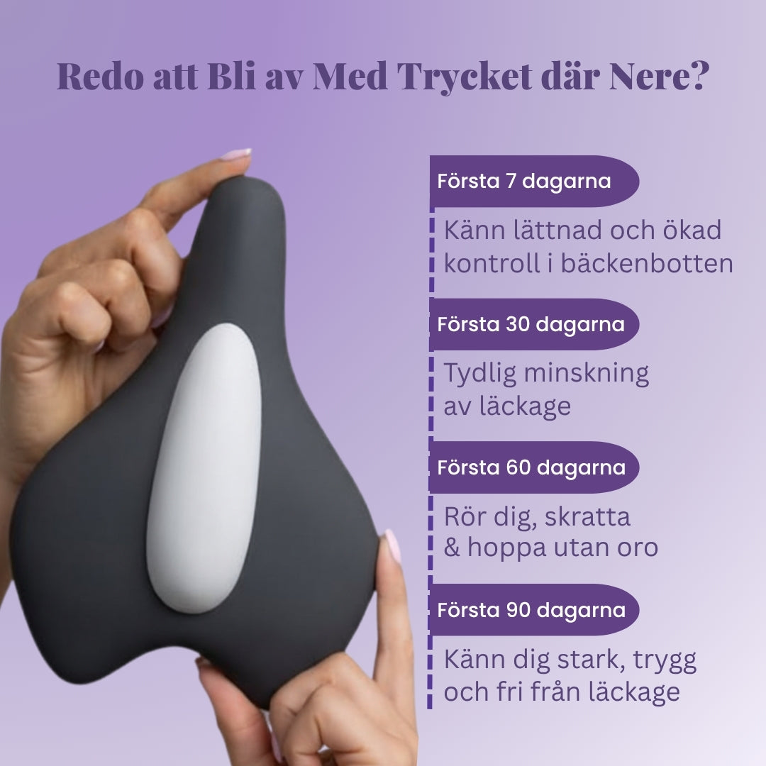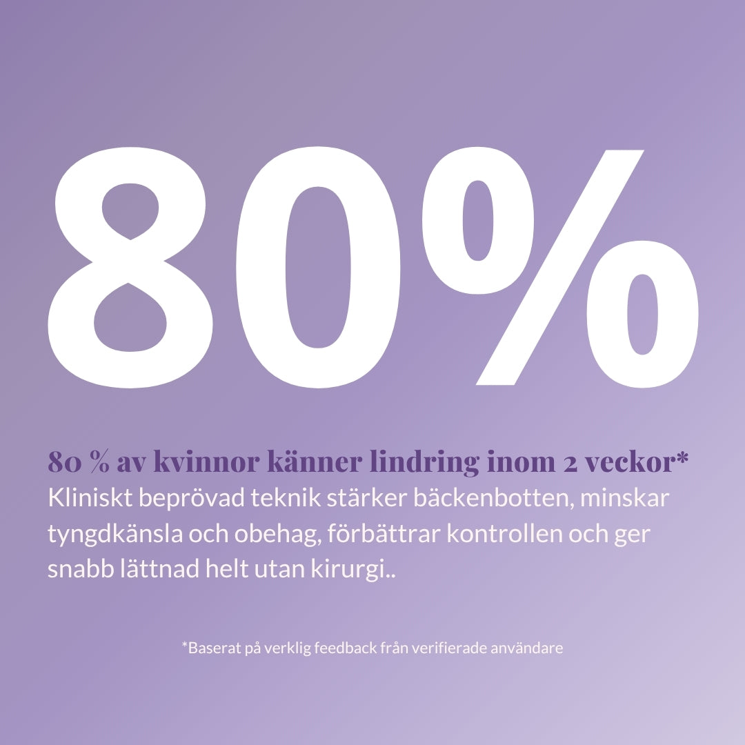 Med regelbunden användning rapporterar användare tydliga förbättringar: 91 % kände mindre tyngdkänsla i bäckenet, 88 % upplevde bättre inre stöd, och 94 % kände ökad komfort i dagliga rörelser. Det betyder mindre läckage, lugnare nätter och mer självförtroende i varje steg.