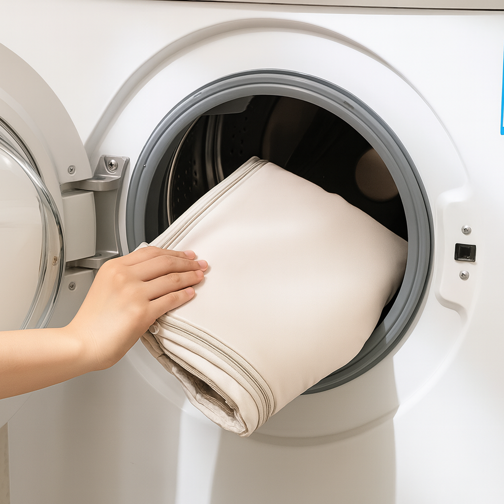 Tillverkad i slitstark serge som är vattentät och dammavvisande för att skydda mot fukt, smuts och skadedjur. Påsen behåller formen över tid, kan maskintvättas och används om och om igen – perfekt för säsongsförvaring och längre resor.